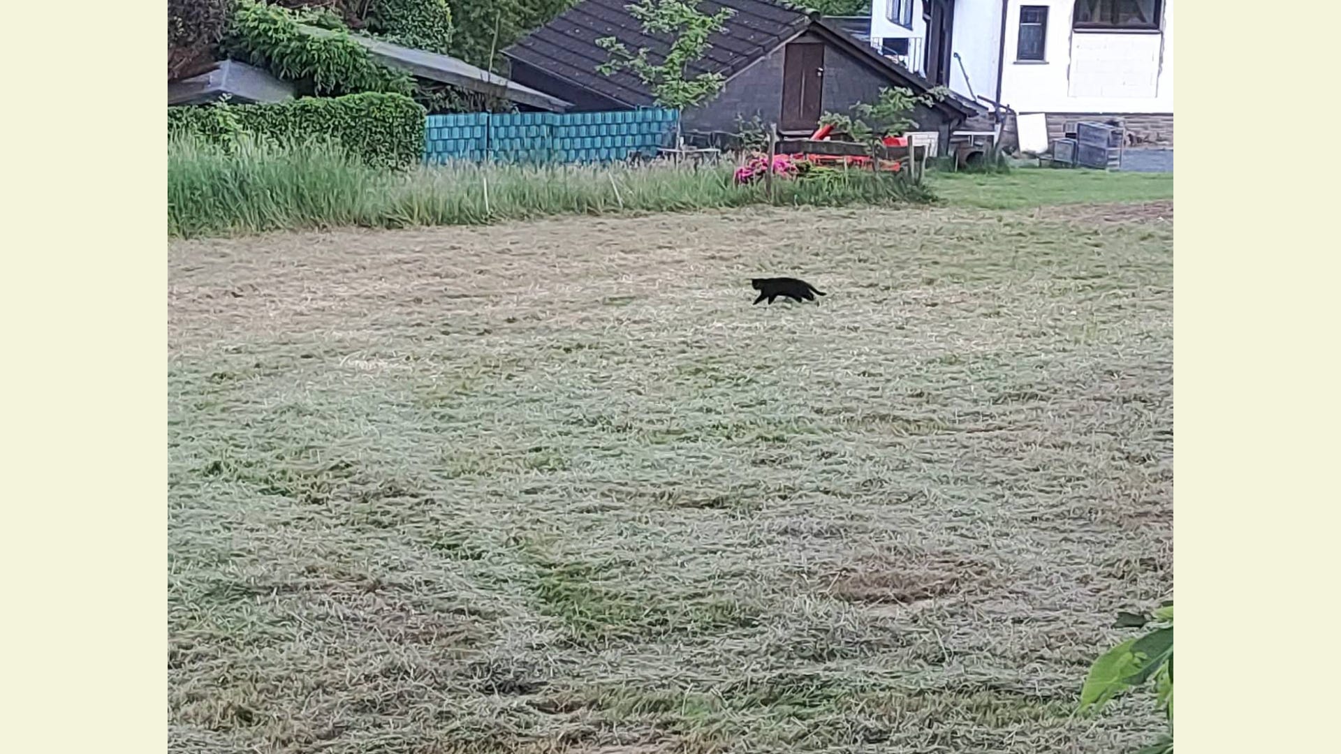 最近(さいきん)よく見(み)る黒猫が草原にいました。